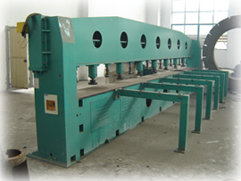 各类卷板机3台套,大型四芯卷板机最大厚度可达40mm;交直流埋弧机3台套,手弧焊、亚弧焊、等离子切割机;xb-9大型铣边机;15t-50t反滚架四台;13×2500剪板机3台;起重桥式行车5台;1200t油压机;30t地中衡;各类金属切削机床等117台。